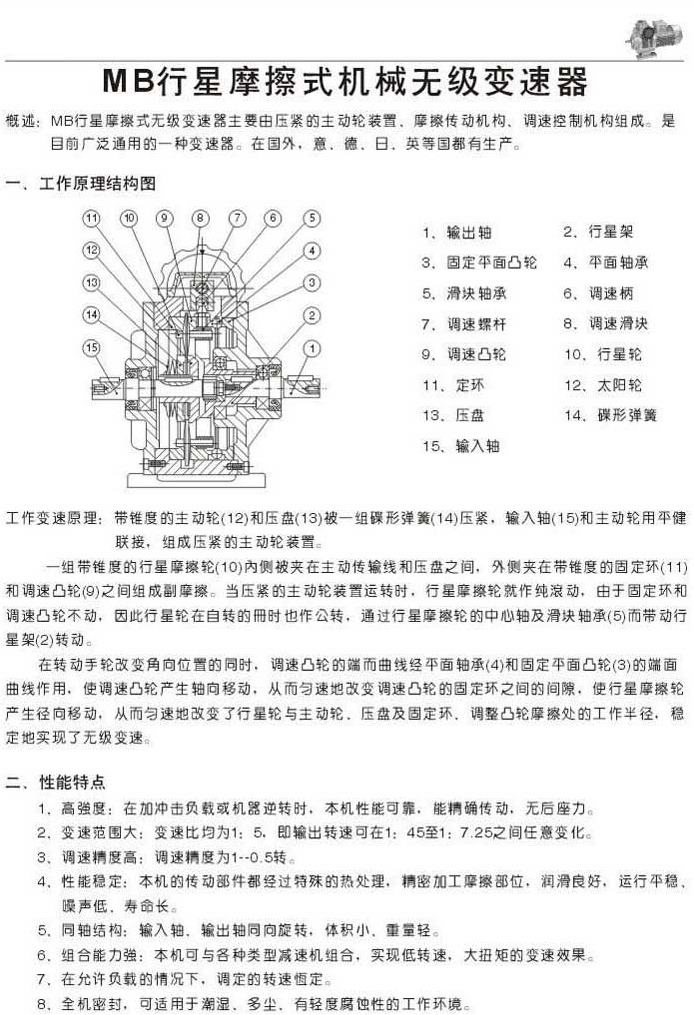 MB行星摩擦式機(jī)械無級變速器工作原理和結(jié)構(gòu)圖性能特點(diǎn)