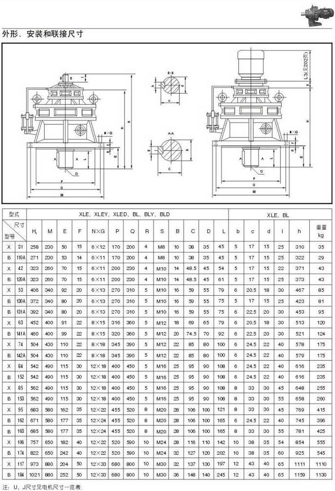 X . B擺線針輪減速機(jī)外型圖,安裝和聯(lián)結(jié)尺寸四 30