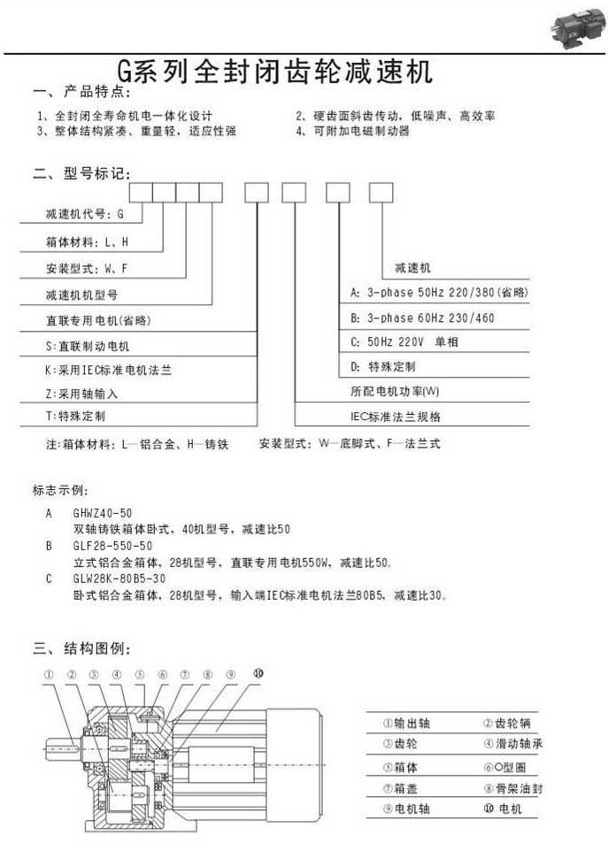 G系列全封閉齒輪減速機(jī)產(chǎn)品特點(diǎn)型號標(biāo)記結(jié)構(gòu)圖例